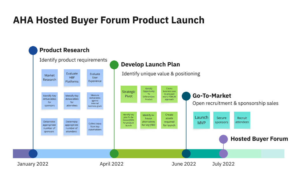 This improved SEO performance and allowed us to own the term “hosted buyer forum”. Separating the product from the competition (hosted buyer programs) by creating a similar, but different product experience. Giving us the ability to set expectations and change the run-of-show to fit our vision.Define Jobs To Be Done - Segment your work into concise jobs that are critical to your Go To Market strategy. We identified eight areas that were critical to a successful launch. Then drilled down to identify the specific jobs to be done in each segment, and who owned each segment. This brought clarity to our work and allowed our small team to execute across several channels.