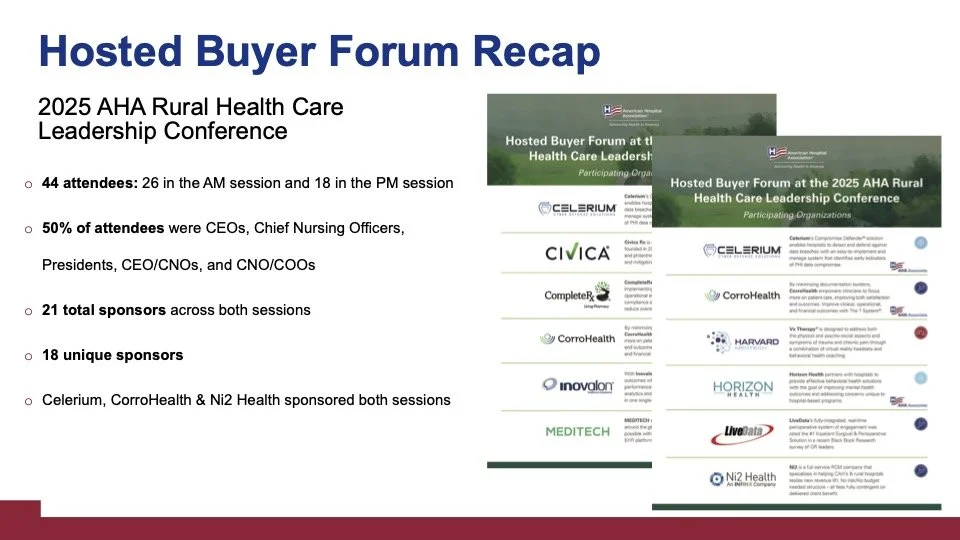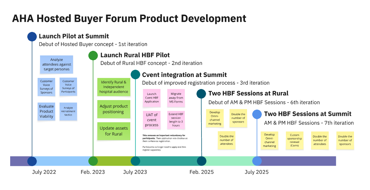 The AHA needed to revitalize sponsorship sales at its flagship national conferences. I was responsible for introducing a new sponsorship product to prevent churn and attract new sponsors. The AHA Hosted Buyer Forum, a private showcase connecting hospital leaders and solution providers tailored to the needs of AHA members and event sponsors.