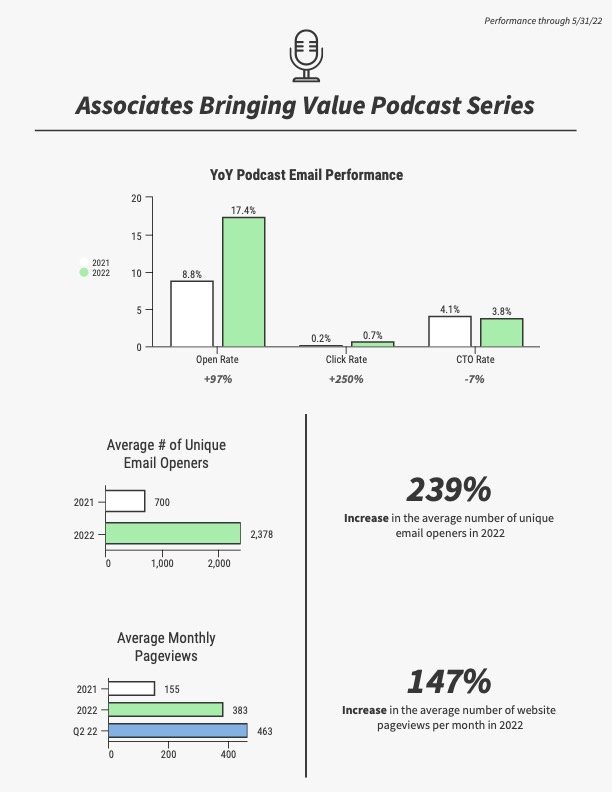 It was also created as a lead generation vehicle for sponsors. Each podcast episode had 1-2 dedicated promotions which were used to create lead generation reporting.